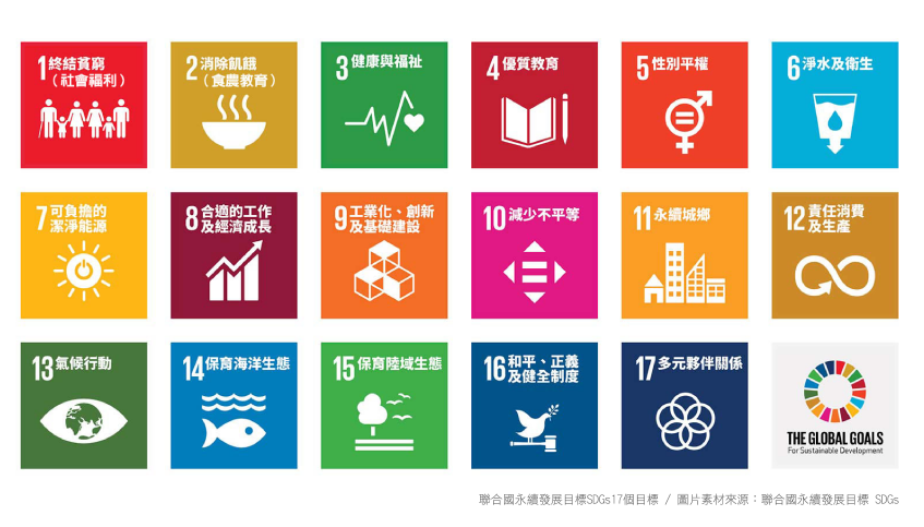 SDGs是聯合國提出的 17項全球共同目標,涵蓋從 減少貧困、保護地球到確保人類福祉 等多個面向。SDGs強調國家、企業與個人在發展經濟時,必須同時實現社會與環境的永續發展。